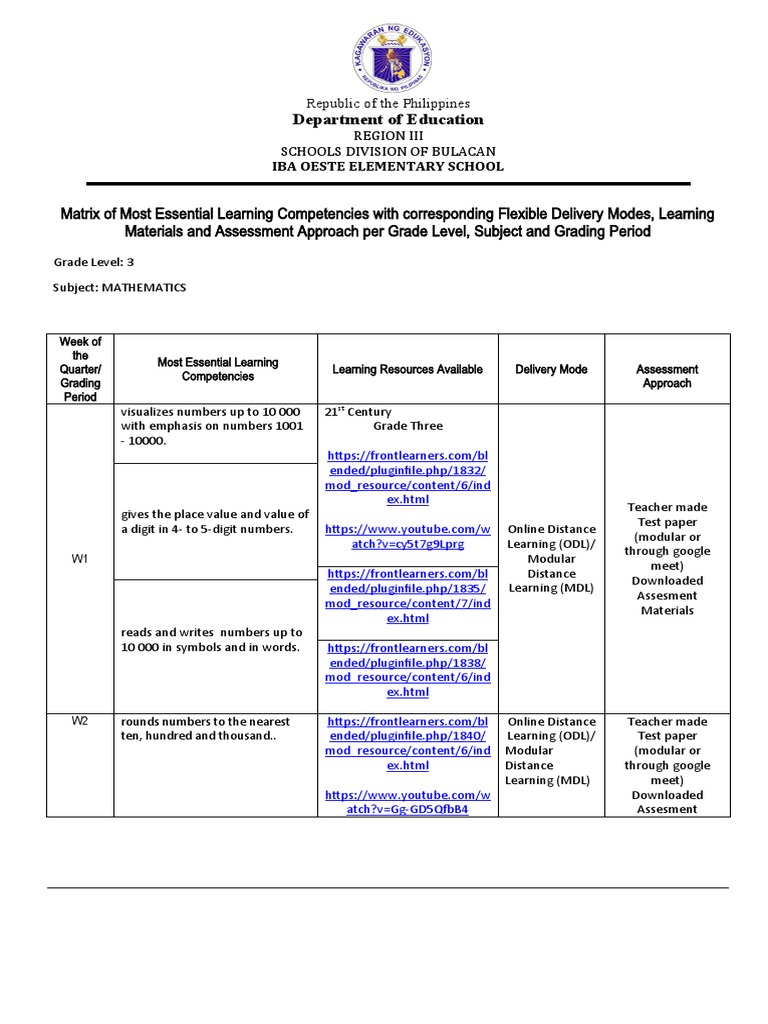 Melc Q1 Math 3 Educational Assessment Learning
