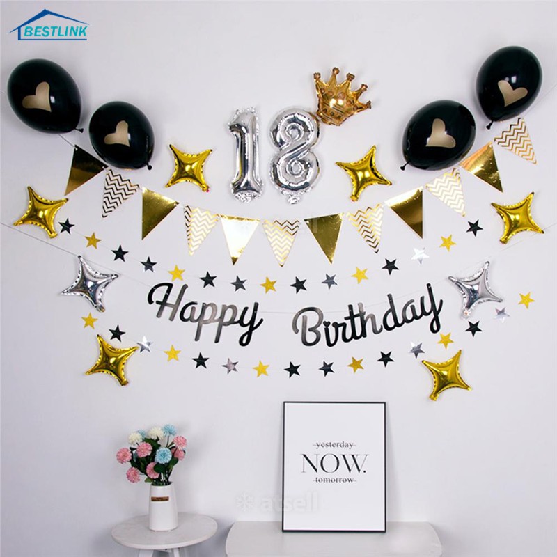 Bl Triangle Flag Banners Birthday Wedding Party Bunting Garland Baby Birthday Flags Party Supplies Shopee Singapore